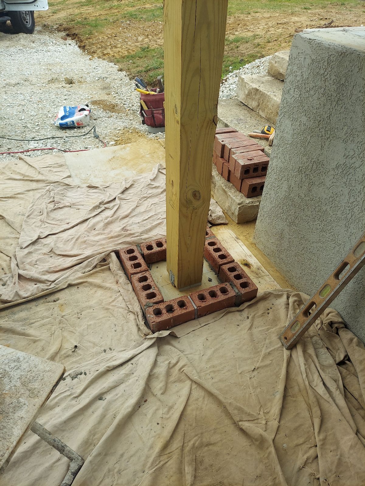 Although the original concrete wasn’t perfectly square, there were no major complications. Our team used the brick piers and caps to correct and enhance the structure’s visual geometry.
